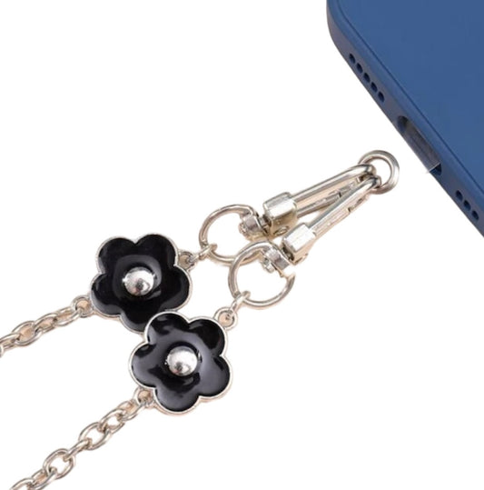 Telefoonketting bloemetjes - zilver - universeel